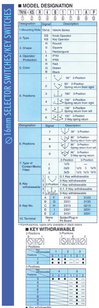 Ø16mm Push Button, Selector and Key Switches. Page 4